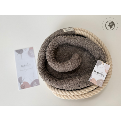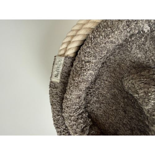 • Tegemist on buklee kangaga, mis on eriti pehme ja soe. Ja mis veel peamine, tegemist on taaskasutatud materjaliga ehk umbes 6st plastpudelist on saanud kangas ühele HopOn kiigele.